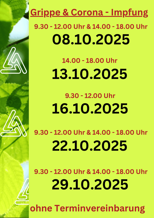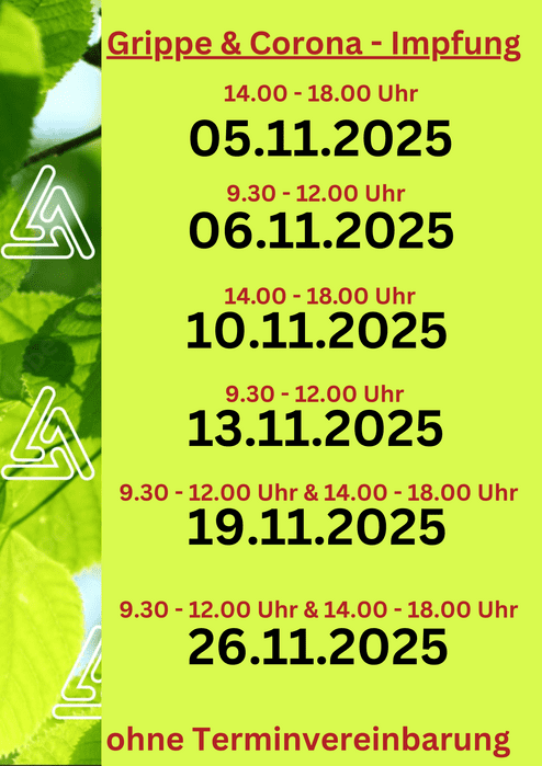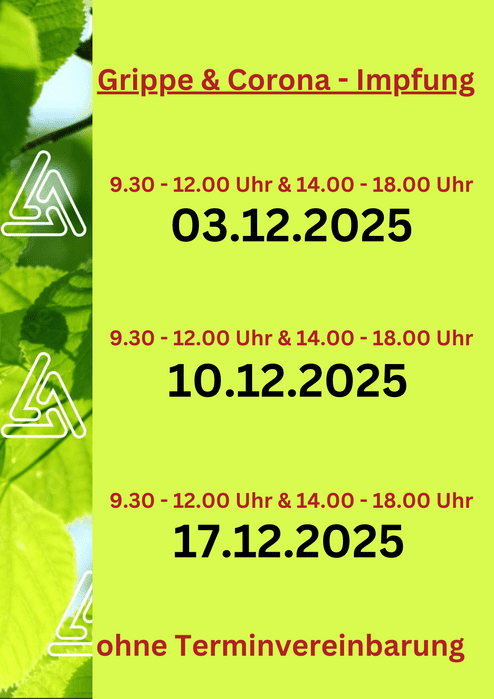 *Blutdruck *Blutzucker *Cholesterin *Harnsäure *Eisenspiegel *Vitamin D-Spiegel *Grippe-Schutzimpfung sowie Covid-19 Schutzimpfung.