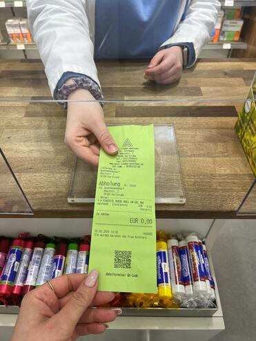 Zuerst bestellen Sie Ihr gewünschtes Medikament bei uns in der Apotheke und bekommen einen Abholzettel mit einem entsprechenden QR-Code zum einscannen.